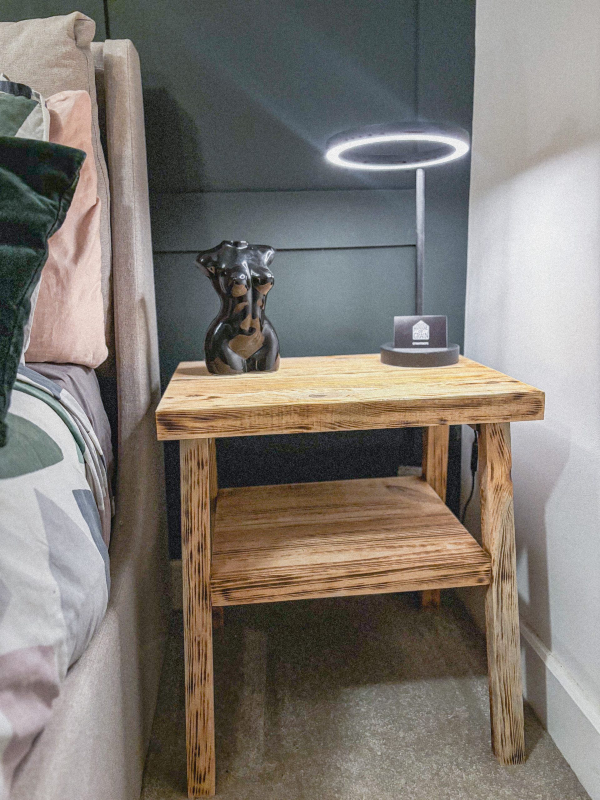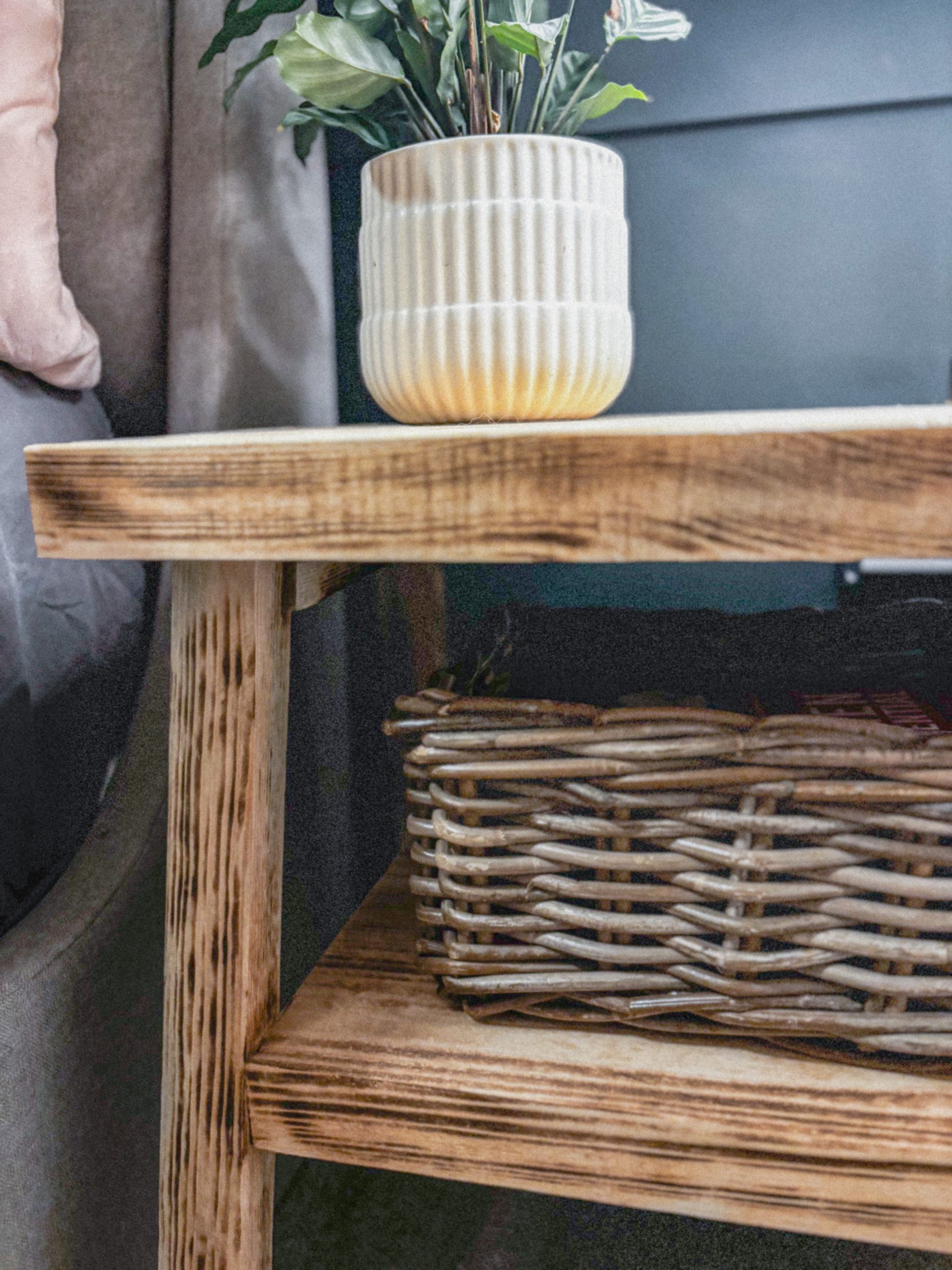 Enhance your space with a rustic wooden table that works as a bedside table or plant stand, featuring natural textures, sturdy craftsmanship and timeless style